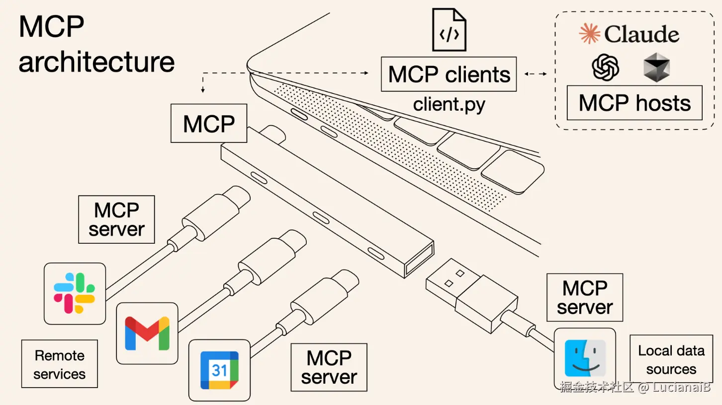 - MCP Client:嵌入 LLM 环境,发起工具调用
