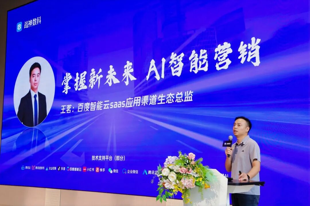 在上午的议程中,战神数科主办的"AI IN ALL 王炸霸屏"产业生态大会热度不减。继腾讯、字节跳动分享生态布局后,百度与阿里国际的专家接连登场,将议题引向更具普适性的企业核心关切------ "智能营销" 与 "跨境出海" ,为现场企业家提供了直击痛点的AI解决方案。