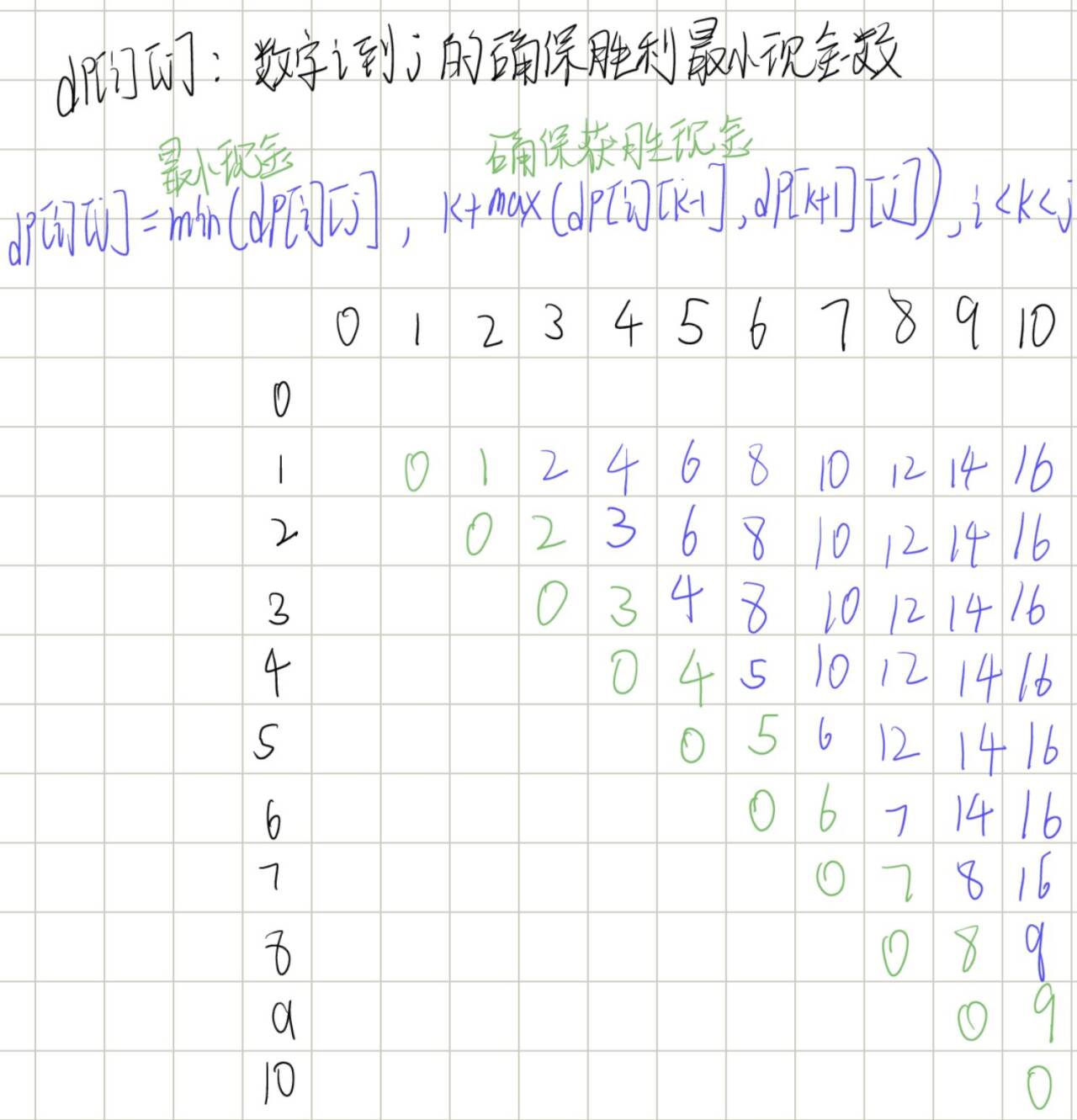 dp[i][j] = Math.min(dp[i][j],Math.max(dp[i][k - 1], dp[k + 1][j]) + k);