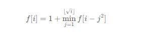 可以依据题目的要求写出状态表达式:f[i] 表示最少需要多少个数的平方来表示整数 i。