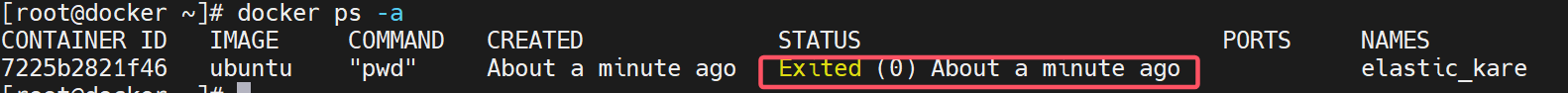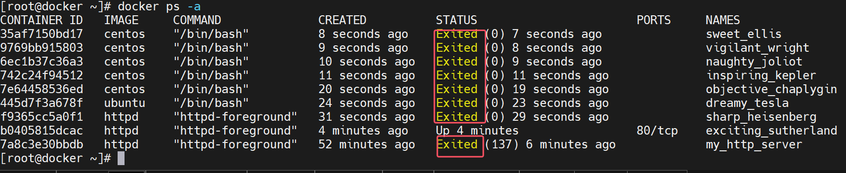 -a 会显示所有状态的容器,可以看到,之前的容器已经退出了,状态为Exited。