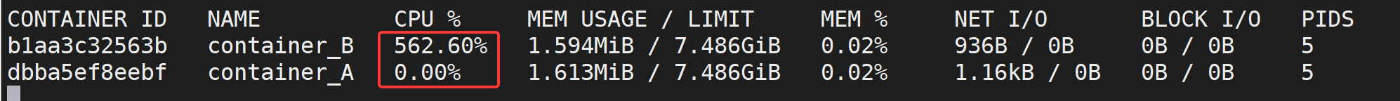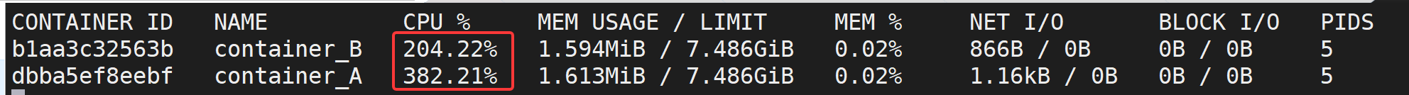 container_A 消耗的 CPU 是 container_B 的两倍。