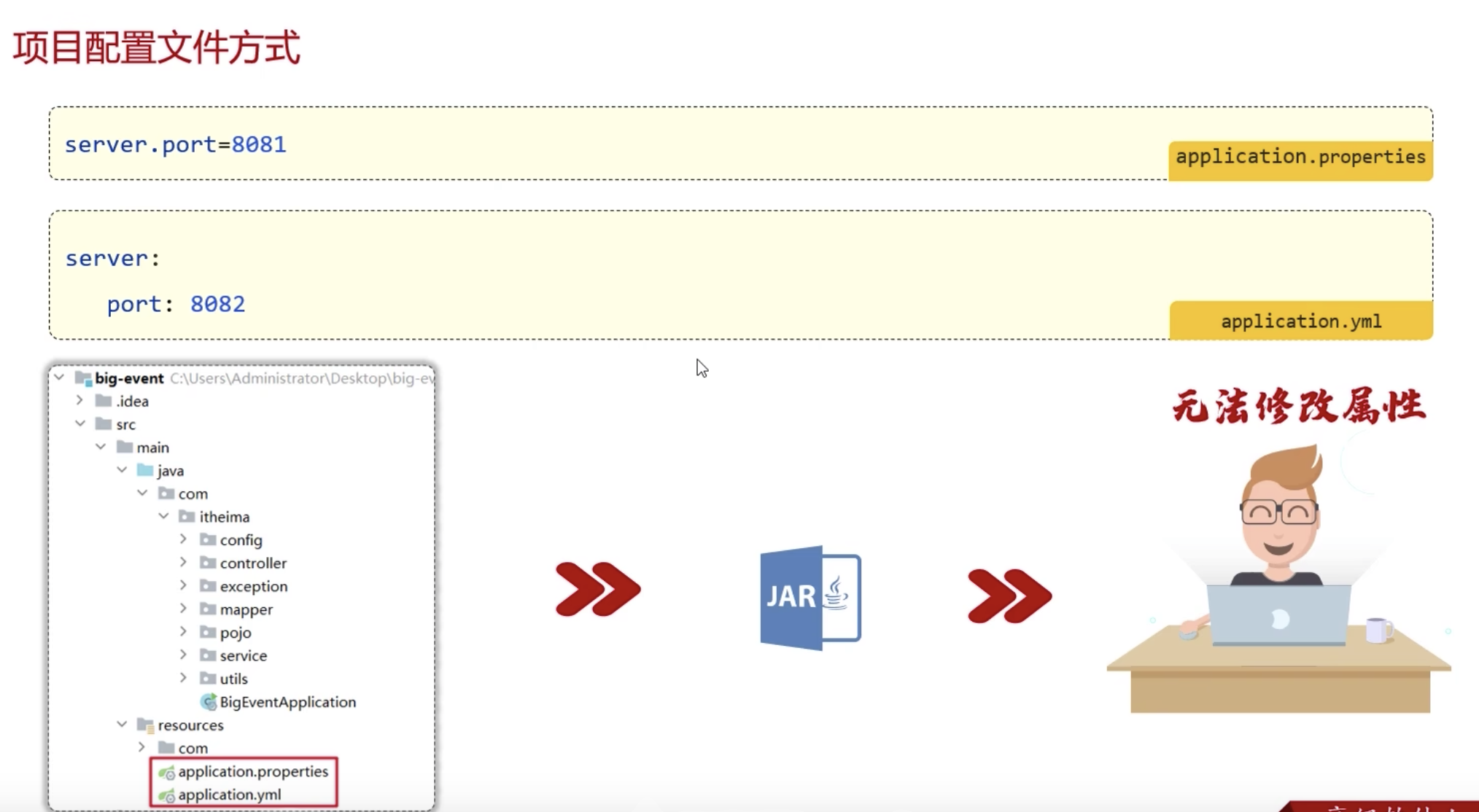 jar 外面的配置,会覆盖 jar 里面的配置。