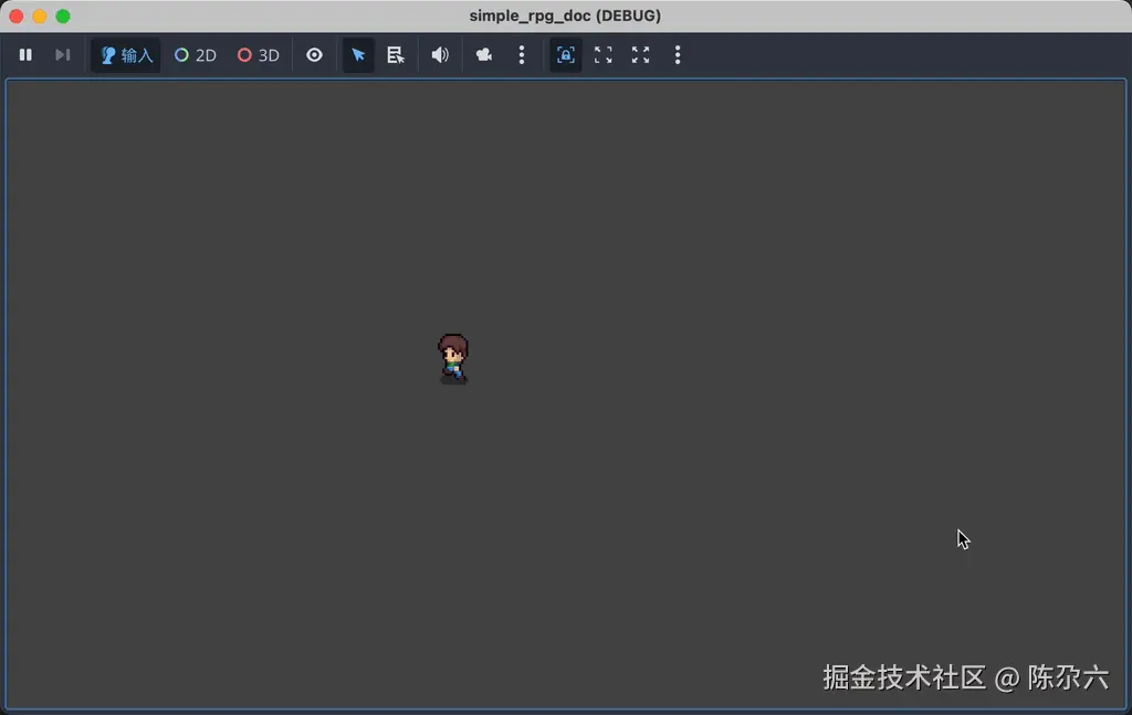 添加完成后,我们保存并运行游戏,可以看到玩家角色已经可以移动了,但是无论我们怎么移动,角色的动画都是向下待机动画。