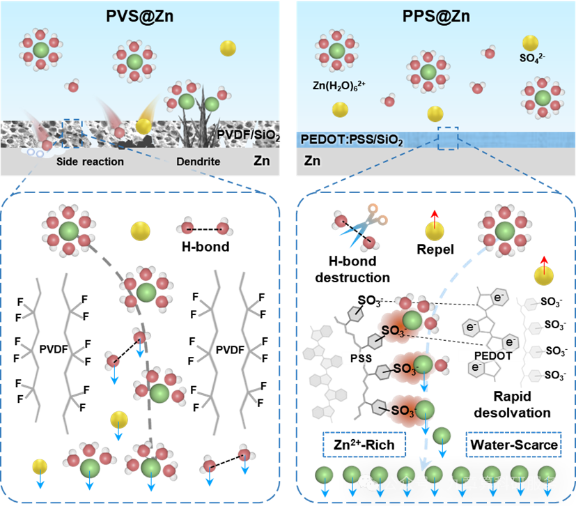 图1 . PVS @ Zn和PPS @ Zn负极锌沉积行为示意图