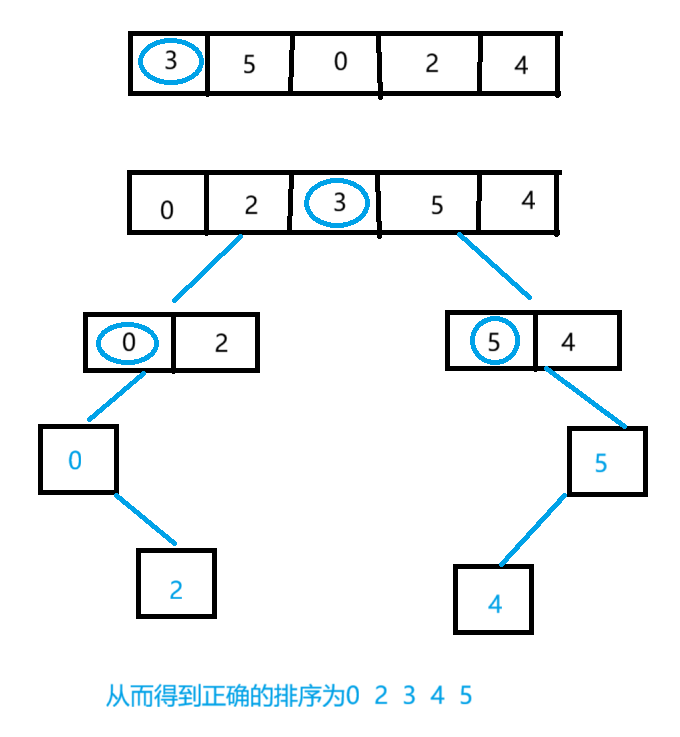 在该递归中,我们一步步的确定基准值,从而使序列有序化。