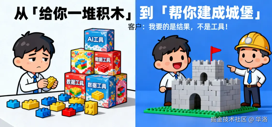 在AI领域,这种转变尤其关键------因为AI的"技术复杂性"和"价值不确定性",客户更需要"有人帮自己踩坑、落地价值"。
