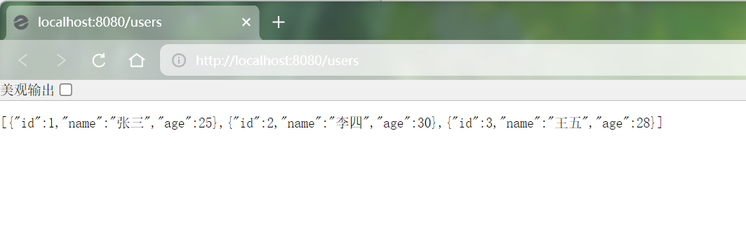 System.out.println("服务器已启动,访问 http://localhost:8080/users");