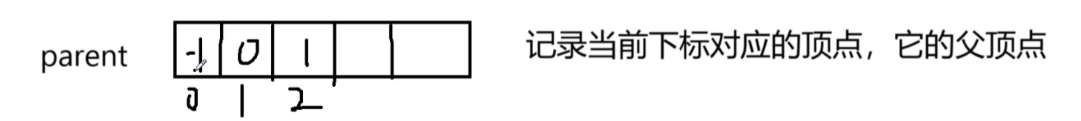 下标2对应的是顶点表中下标为2的元素,下标为1对应的是顶点表中下标为1的元素,只不过parent类型的值存的是它父节点的下标,也就是说parent的父节点是下标1对应的元素......