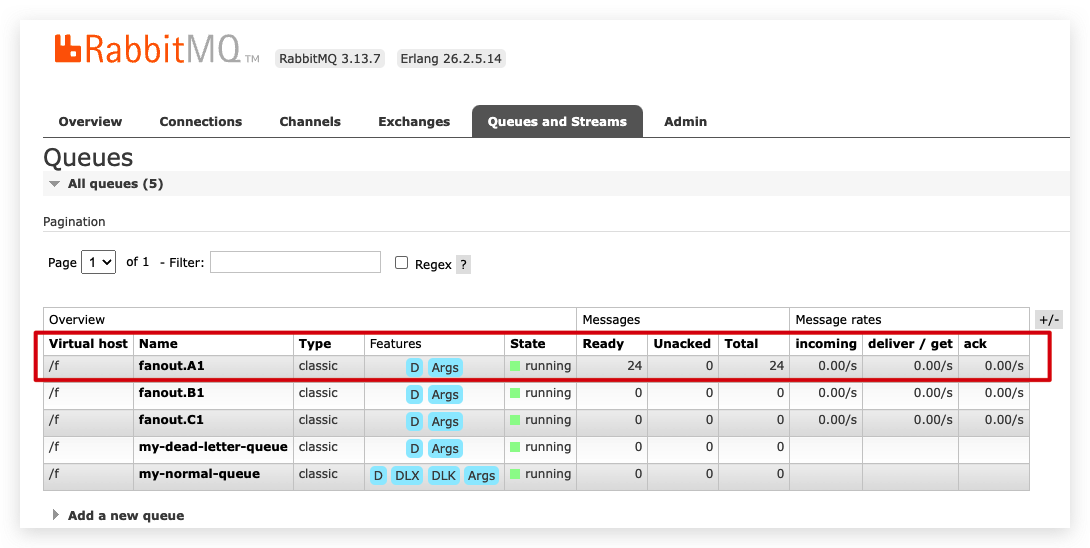 * 创建三个队列 :fanout.A fanout.B fanout.C