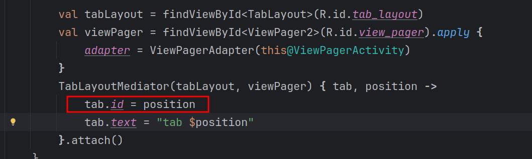再反过来看到代码,原来是在kotlin代码中设置了tab的id。