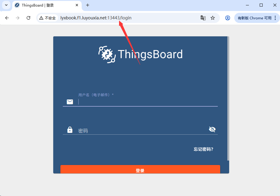 6,在外网电脑上,打开浏览器,在地址栏输入从路由侠生成的外网地址,就可以看到内网部署的 ThingsBoard 了。