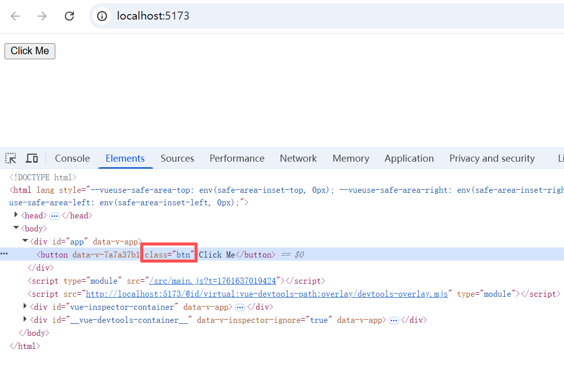 <button class="btn" v-bind="$attrs" @click="handleClick">Click Me</button>