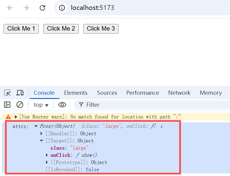 <button class="btn" v-bind="$attrs" @click="handleClick">Click Me 2</button>