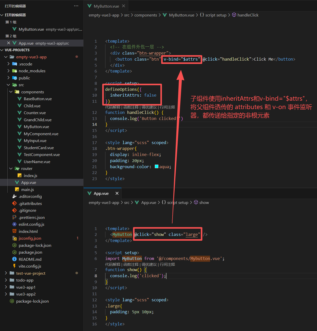 - [2.1 使用方式(defineOptions( inheritAttrs: false}))](#2.1 使用方式(defineOptions( inheritAttrs: false})))