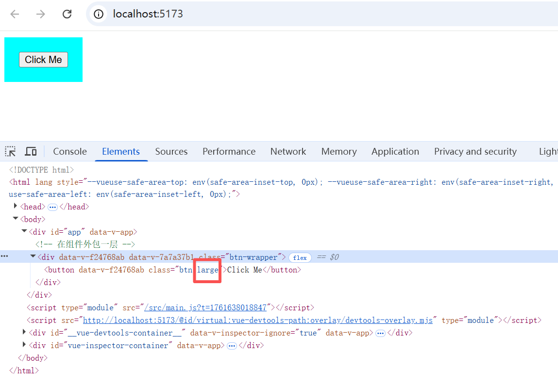 发现 <MyButton> 组件透传的 attribute 和 v-on 事件监听器 会继续传给 <BaseButton>