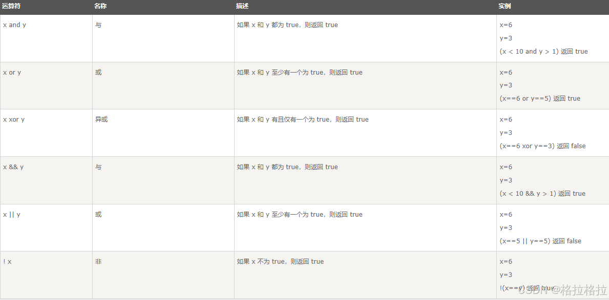 [1. and 、&& 与: :x、y都为true ,则返回true](#1. and 、&& 与: :x、y都为true ,则返回true)