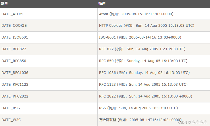 [10.PHP 5 预定义的 Date/Time 常量](#10.PHP 5 预定义的 Date/Time 常量)