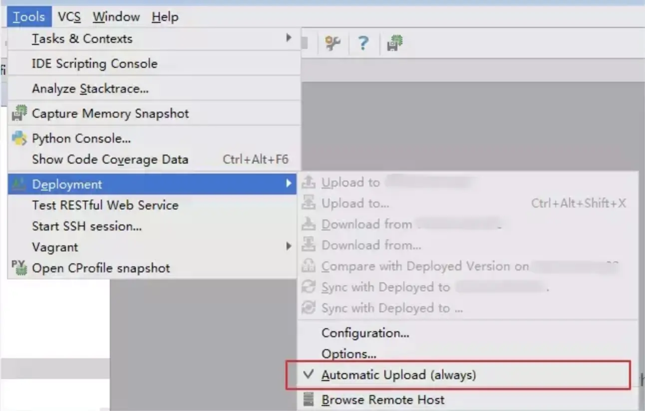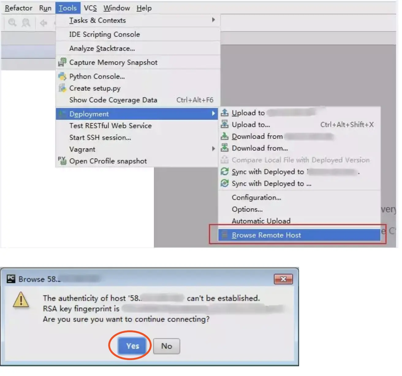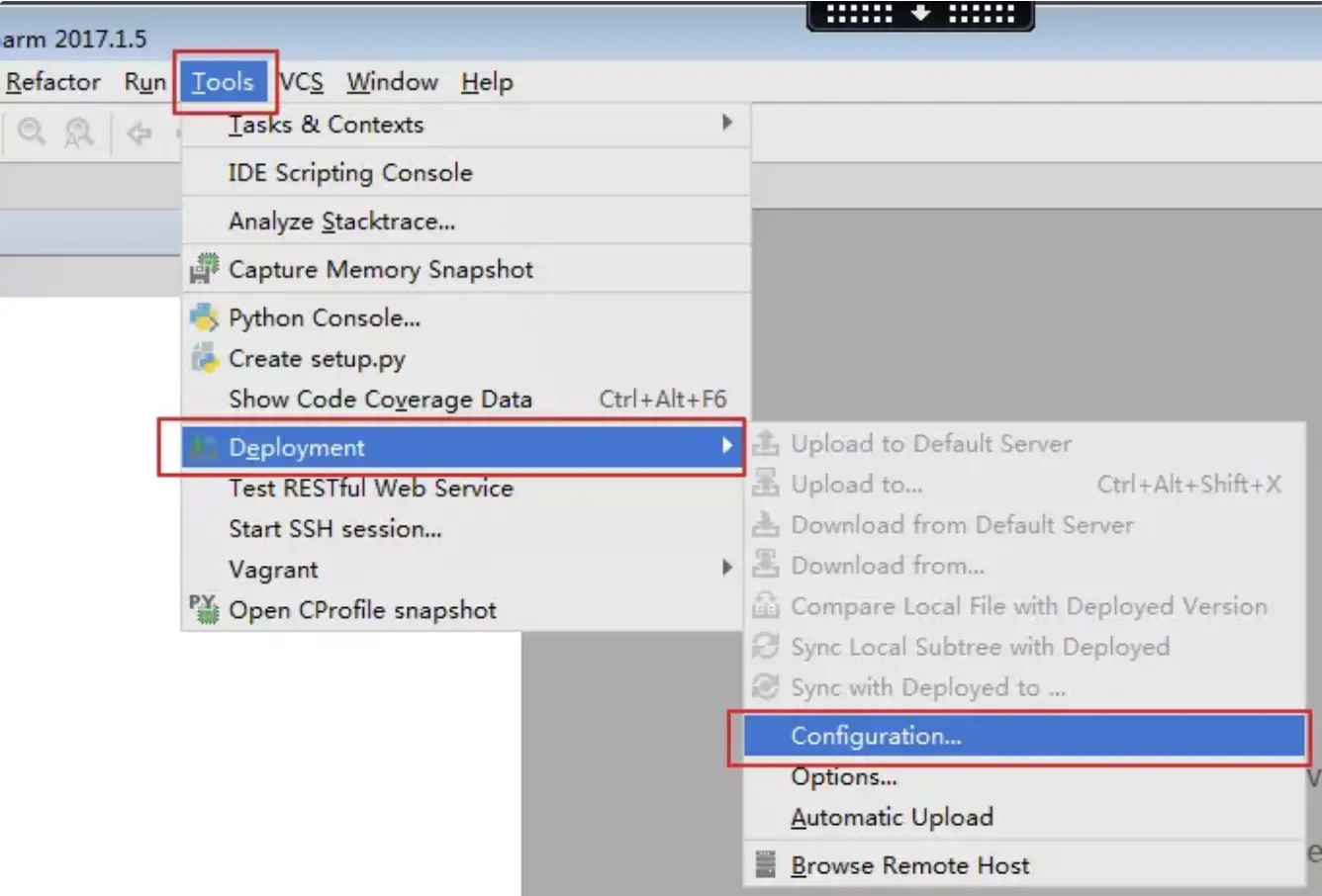 接下来,我们要连接远程服务器了。 Tools -> Deployment -> Browse Remote Host