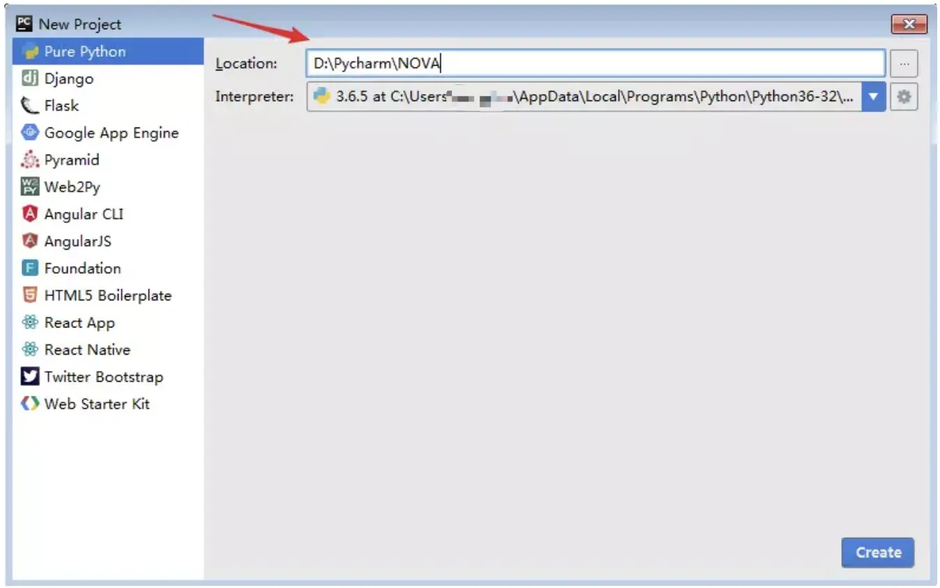 首先,要在Pycharm中新建一个空的项目,后面我们拉服务器上的项目代码就会放置在这个项目目录下。我这边的名字是 NOVA,你可以自己定义。