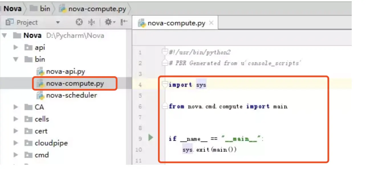 比如,我这边的项目,在服务器上是以一个服务运行的。而我们都知道服务的入口是Service文件。 cat /usr/lib/systemd/system/openstack-nova-compute.service