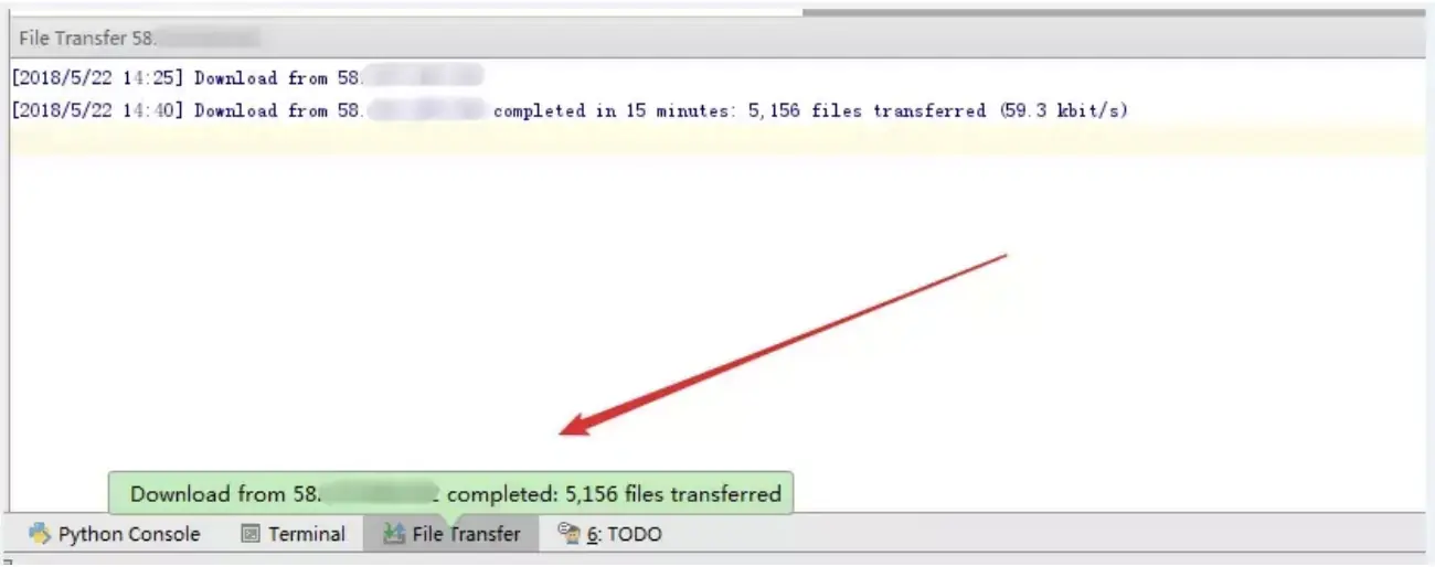 点击OK后,会自动下载远程解释器。如果你的项目比较大,这个时间可能会比较久,请耐心等待。