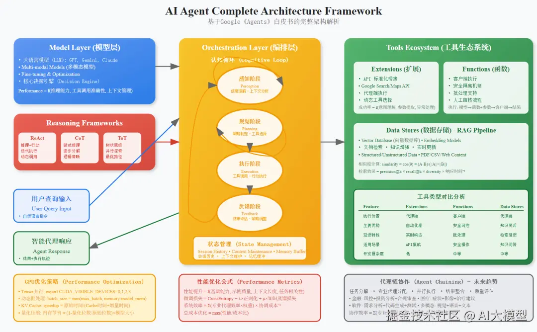 Google发布的《Agents》白皮书,为AI Agent的工程化实践提供了系统性的技术框架。作为一线开发者,我们需要的不是概念解释,而是可操作的技术方案。本文基于白皮书内容,结合实际开发经验,为Agent应用开发者提供从架构设计到生产部署的完整技术路径。
