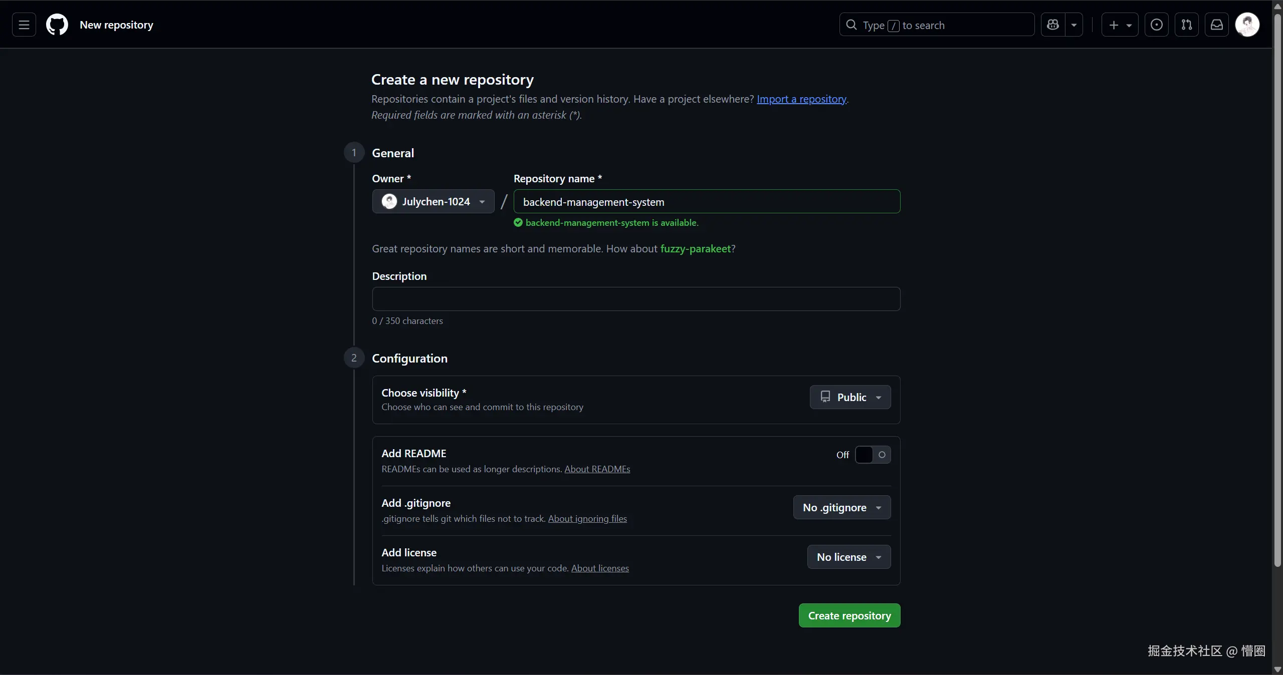 git remote add origin https://github.com/Julychen-1024/backend-management-system.git