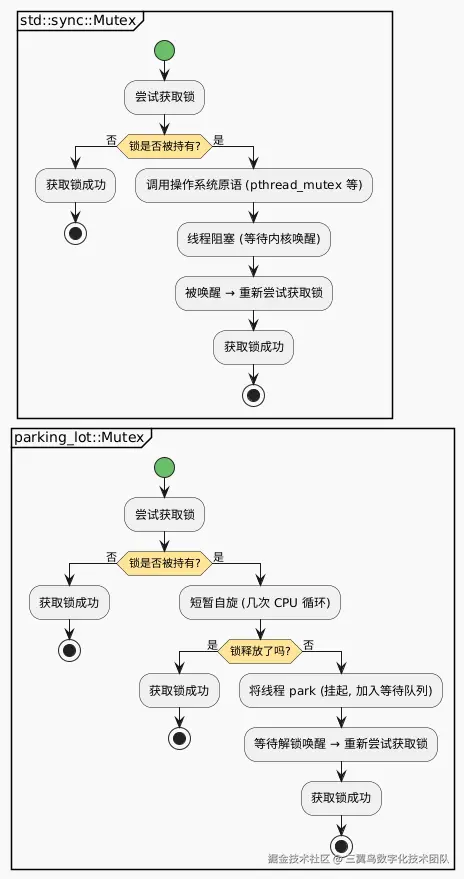| 特性 | parking_lot | std::sync 标准库 |