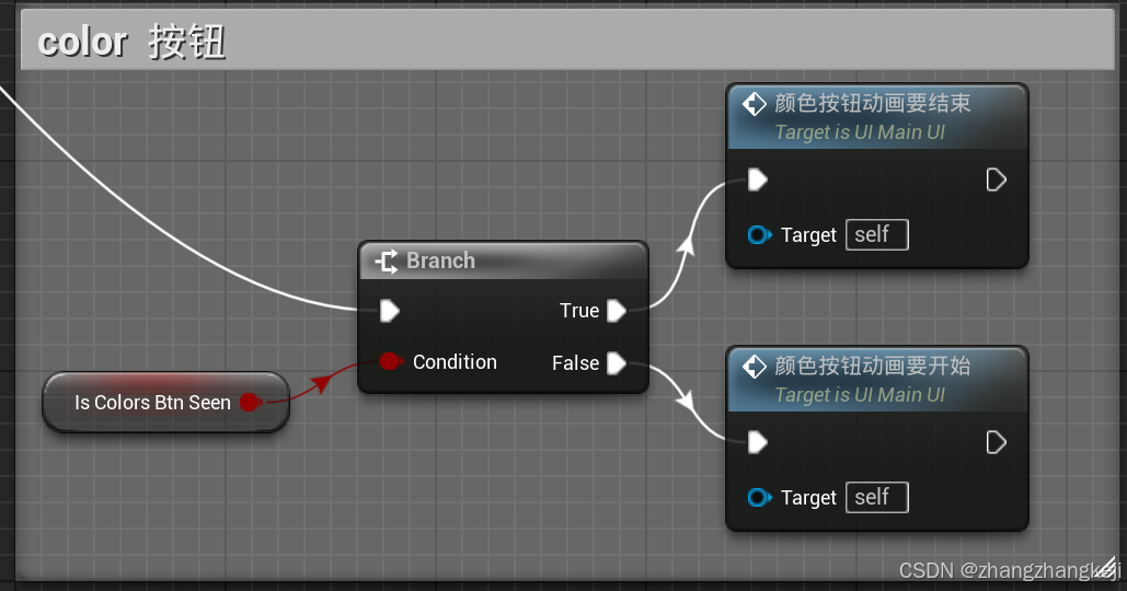 UE5 蓝图-11:本汽车蓝图的事件图表,汽车拆分事件,染色事件(绿蓝黄青)。