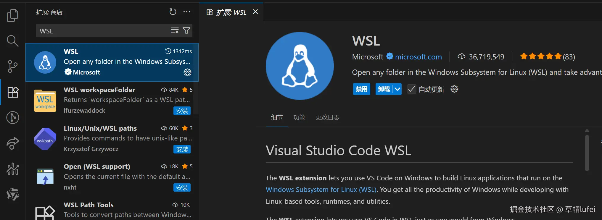 在 VSCode 中使用 WSL 发行版,安装 WSL 扩展