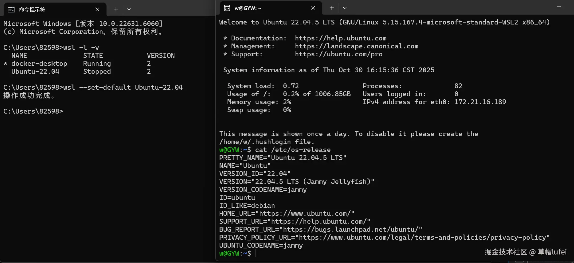 修改成功后,再次进入 WSL 命令行后,就默认 Ubuntu 了