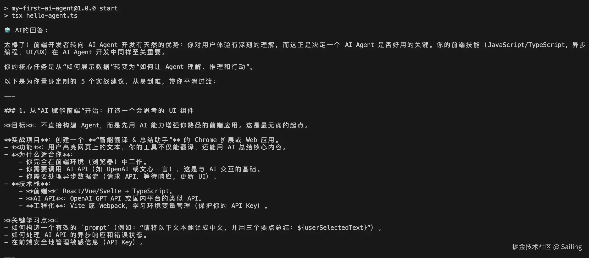 "我是一个前端开发者,想转向AI Agent开发。从哪开始?给我5个实战建议。"