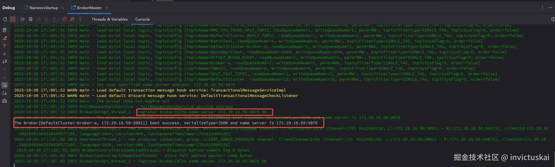 启动broker 控制台出现如下内容表示broker启动成功