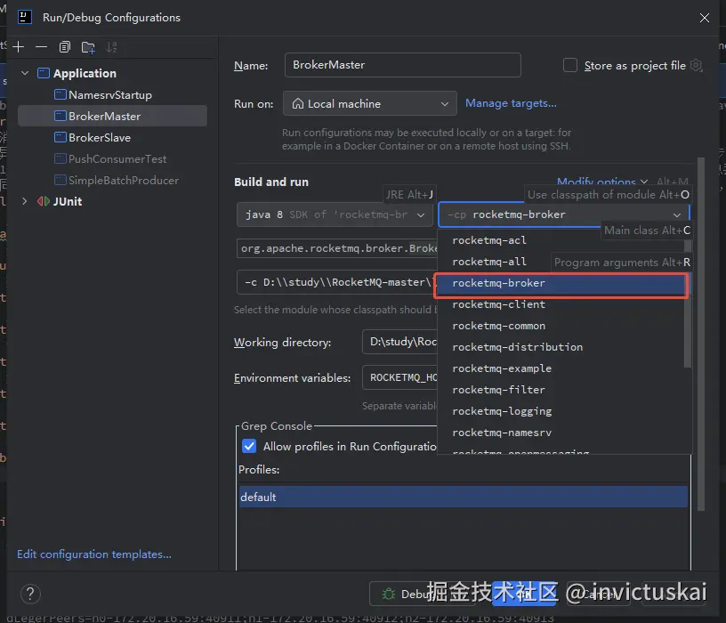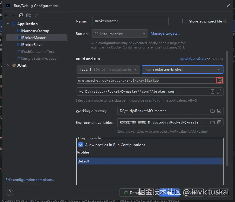 指定broker启动配置文件 -c D:\\study\\RocketMQ-master\\conf\\broker.conf
