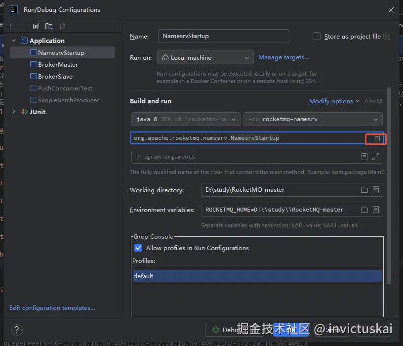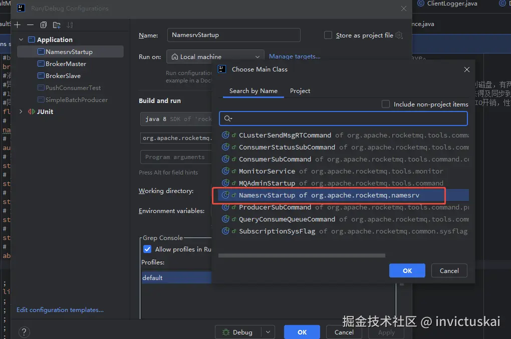 选择NamesrvStartup这个类