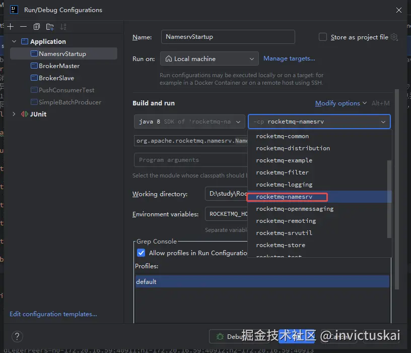 这里选择namesrv所在moudle
