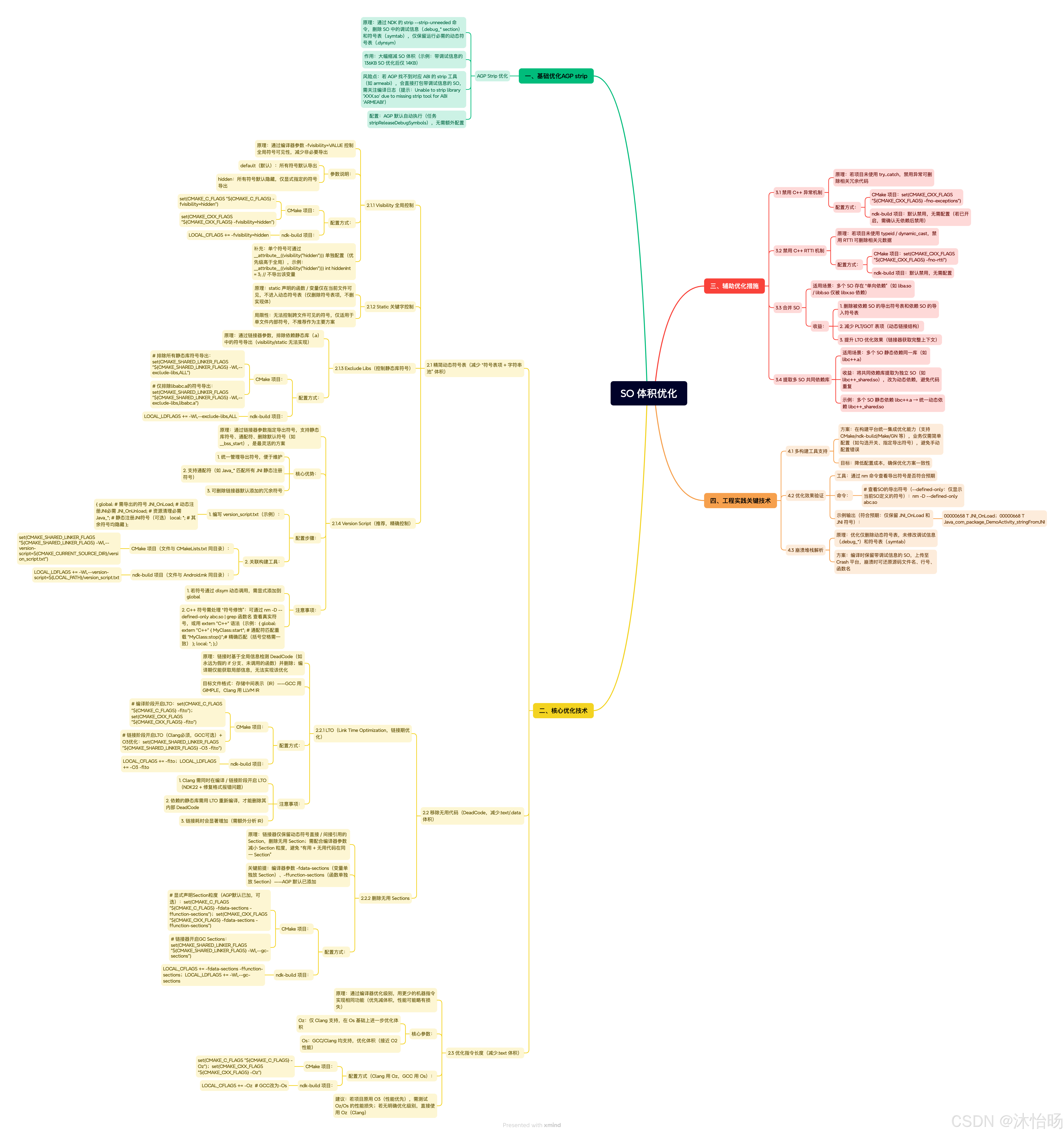 原理:链接器仅保留动态符号直接 / 间接引用的 Section,删除无用 Section;需配合编译器参数减小 Section 粒度,避免 "有用 + 无用代码在同一 Section";