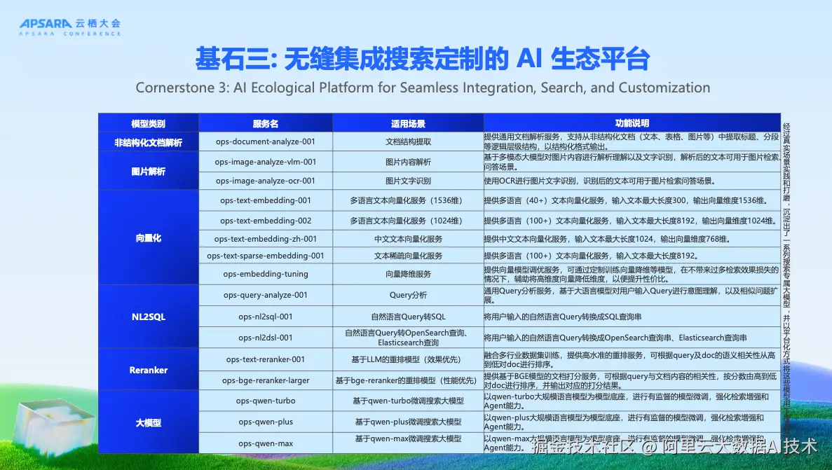 无缝集成 AI 平台 :无缝集成阿里云 AI 搜索开放平台 ,提供丰富的搜索专属大模型。这并非通用模型,而是经过大量真实搜索场景打磨的专属模型,让检索和生成效果更专业。