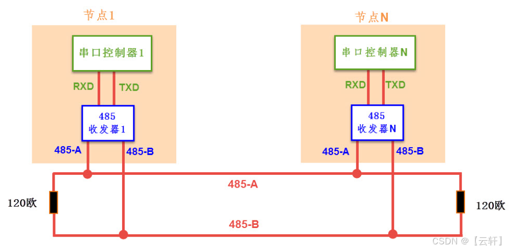- 总线过载 :多个120Ω电阻并联在总线上,会急剧降低A、B线间的总阻抗。