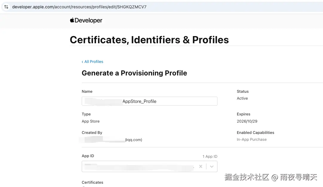 | 描述文件 | Developer Portal | 生成 .mobileprovision |