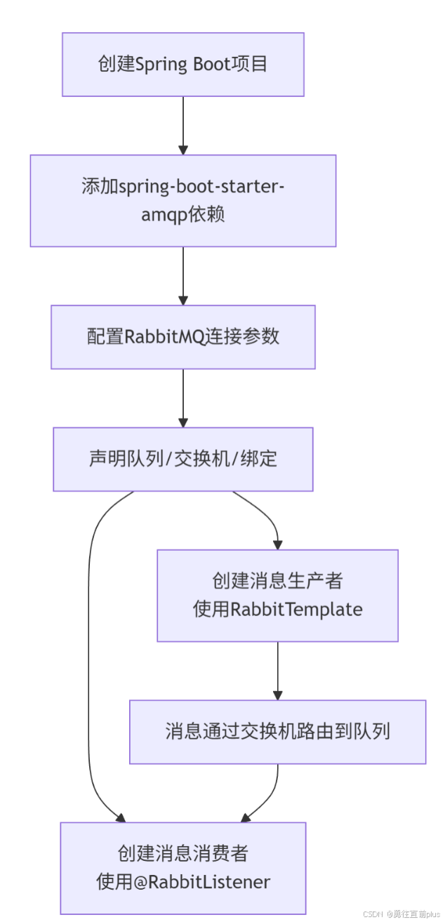 springoot整合rabbitMQ的流程非常简单直接,主要包括依赖引入、项目配置、声明创建交换机/队列、生产者/消费者配置与使用等等。