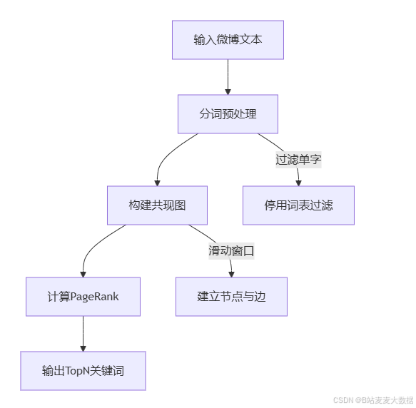 代码介绍:以下是一个基于TextRank算法的微博舆情关键词提取方案,包含代码说明、流程图和示例代码: