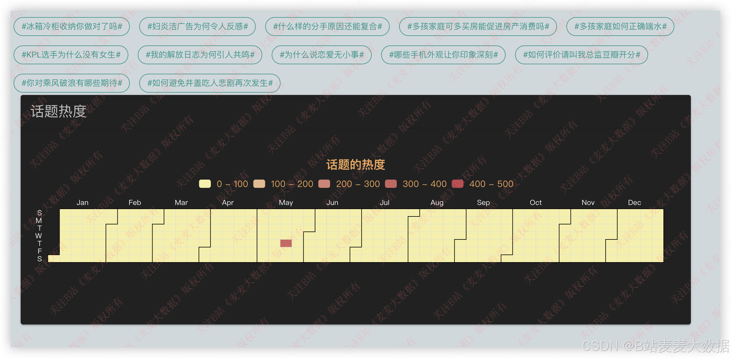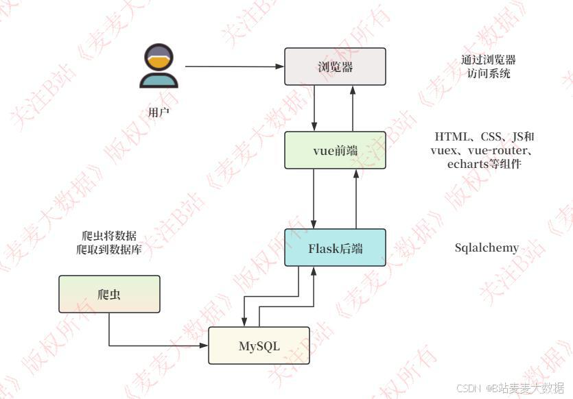 系统采用前后端分离架构模式,前端基于Vue.js构建响应式界面,整合ECharts可视化库实现动态图表渲染,通过Axios组件与后端Flask服务进行RESTful API通信。后端采用Flask框架开发微服务接口,集成SQLAlchemy ORM进行MySQL数据库操作,数据模型包含话题表、评论表、用户表等核心实体。独立部署的微博爬虫模块采用Scrapy框架实现分布式数据采集,通过模拟登录和API调用获取实时话题数据(包括话题内容、评论文本、发布时间、互动数据等),数据经预处理后存储至MySQL数据库。文本分析引擎集成Jieba分词、SnowNLP情感分析、Gensim主题模型等NLP技术,支持关键词提取(TF-IDF/TextRank算法)、观点抽取、情感极性分析等处理流程。可视化模块通过D3.js与ECharts构建动态热力图、词云图谱、时间序列分析等交互式图表,热点分析功能结合时间衰减算法实现历史趋势追踪与预测。用户认证模块采用JWT令牌机制保障接口安全,个人中心支持头像上传、密码修改等基础功能,完成完整的用户生命周期管理。