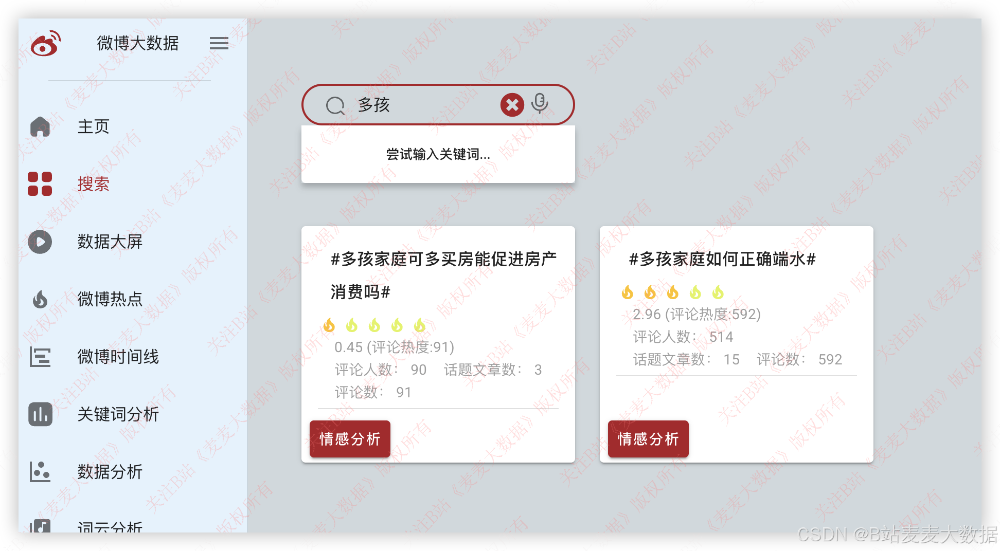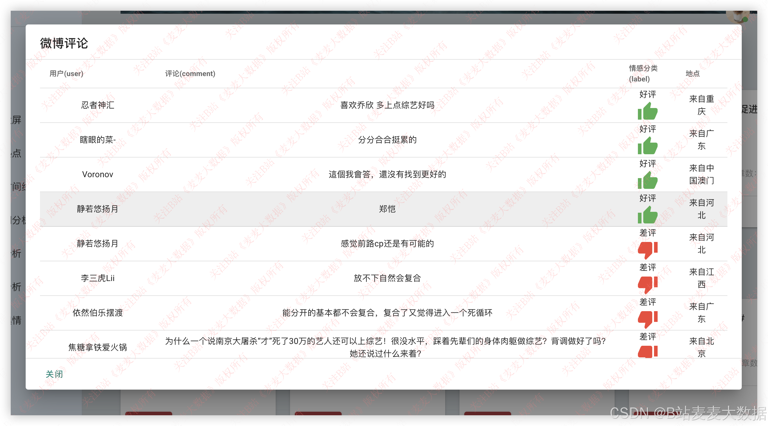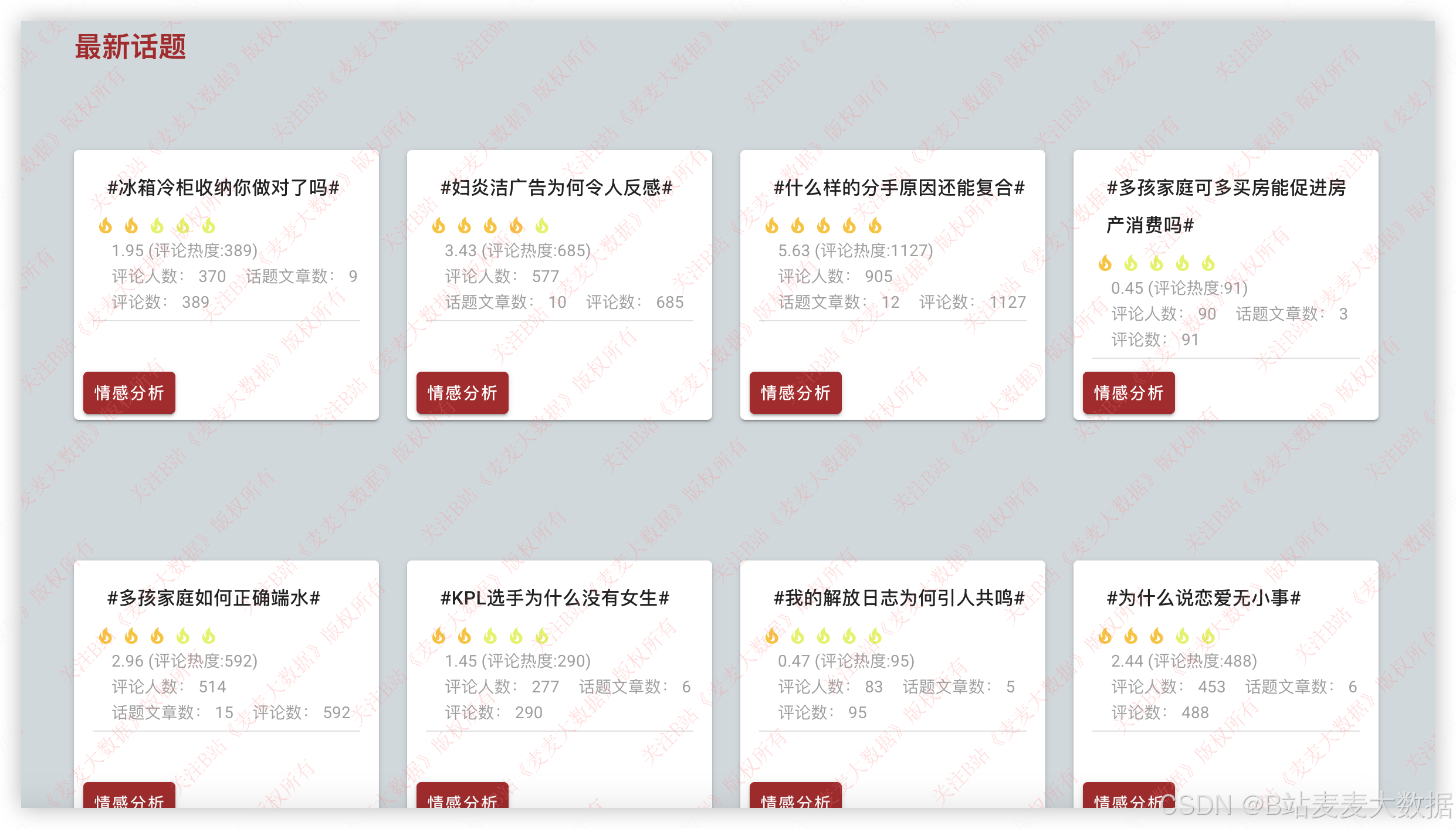 点击话题卡片还可以看到最新的微博话题评论,以及对评论的情感分析结果(大拇指):