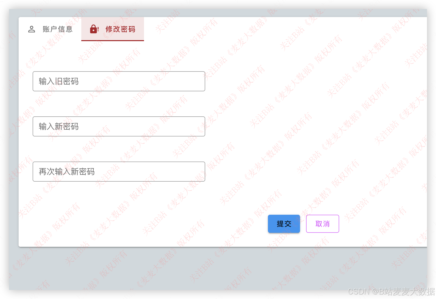 修改密码需要输入用户旧密码和新密码,验证旧密码成功后,就可以完成密码修改。