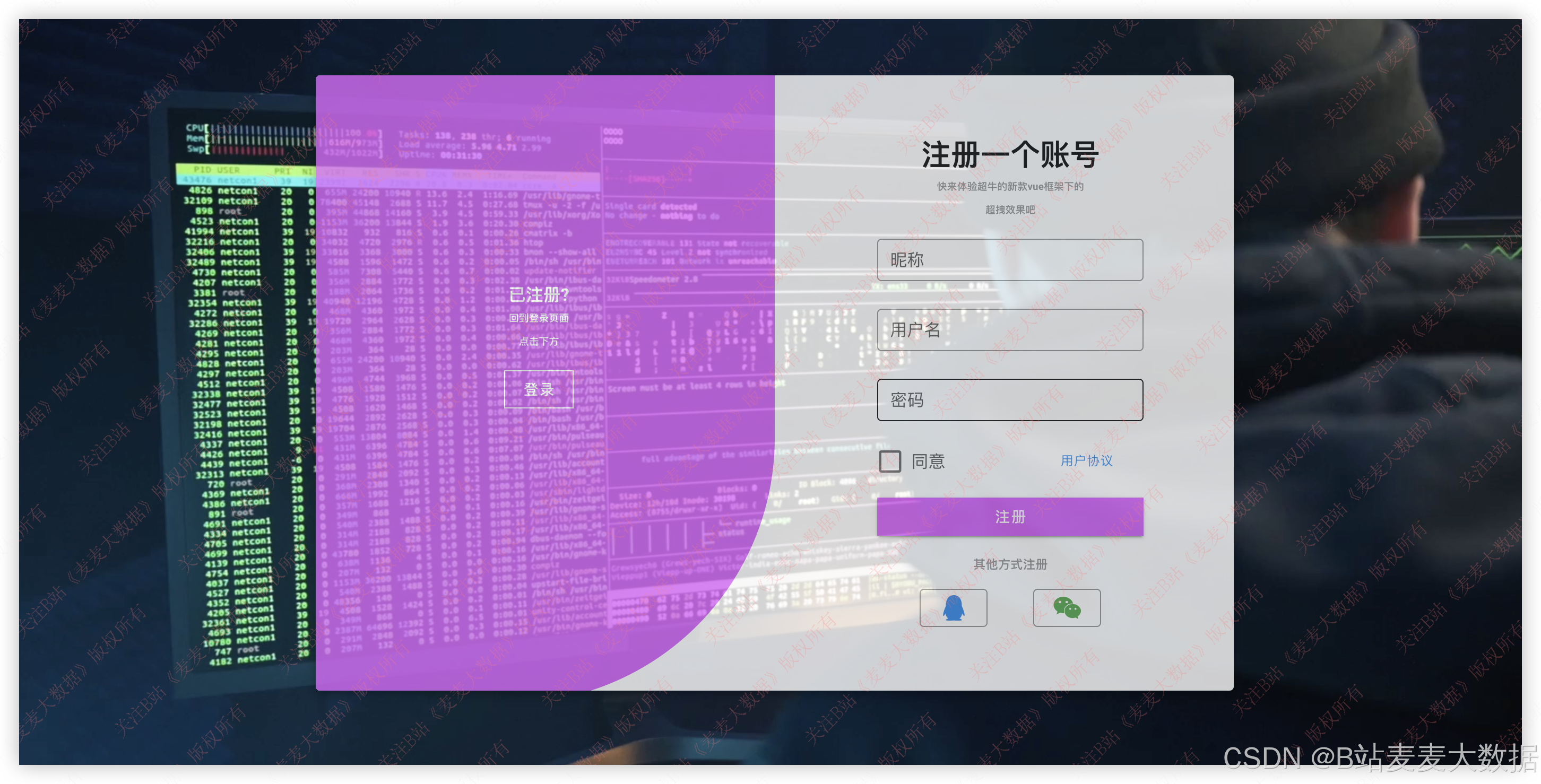 登录注册做的是一个可以切换的登录注册界面,点击去登录后者去注册可以切换,背景是一个视频,循环播放。