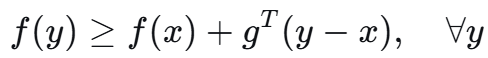 对于凸函数 f 在点 x 处的次梯度 g 是一个支撑超平面对应向量: