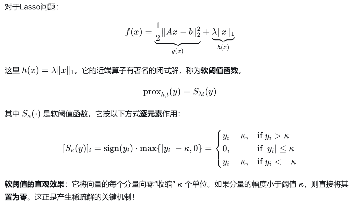 对光滑部分 g(x) 做梯度下降 ,然后对非光滑部分 h(x) 应用一个特殊的"映射"------近端算子。