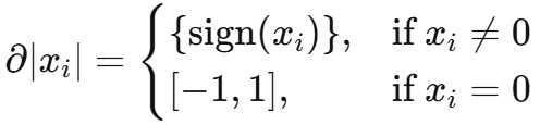 求解lasso时,|w| 在0点处不可微,不可直接用梯度下降法。
